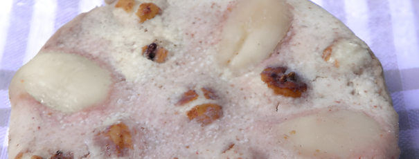 Zloženie plnky: 50 g vlašských orechov ¼ ČL mletej vanilky ½ PL mletej škorice 4 PL javorového sirupu Náplň do plnky: sušené slivky kandizovaný zázvor Posýpka: 50 g vlašských orechov 1 PL trstinového cukru…