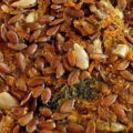 2. Do krému pridajte ľanové semienka, bylinky a soľ. Cesto poriadne premiešajte.