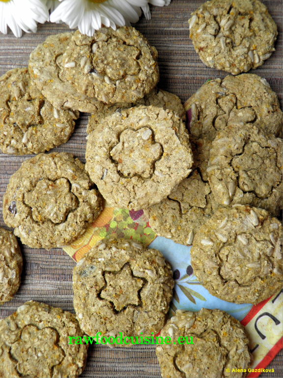Postup: Zeleninu očistíme a odšťavíme. Šťavu vypijeme a zvyšnú drvinu rozmixujeme spolu s prepláchnutými namočenými ovsenými vločkami. Vzniknutý krém zahustíme teffovou múkou, pridáme slnečnicu, olej, soľ a všetko riadne premiešame. Z cesta robíme placky, ktoré poukladáme na podložku, ozdobíme a dáme sušiť. Čas sušenia závisí od výkonnosti sušičky. Výkonným sušičkám (Excalibur) sušenie trvá približne jeden deň.