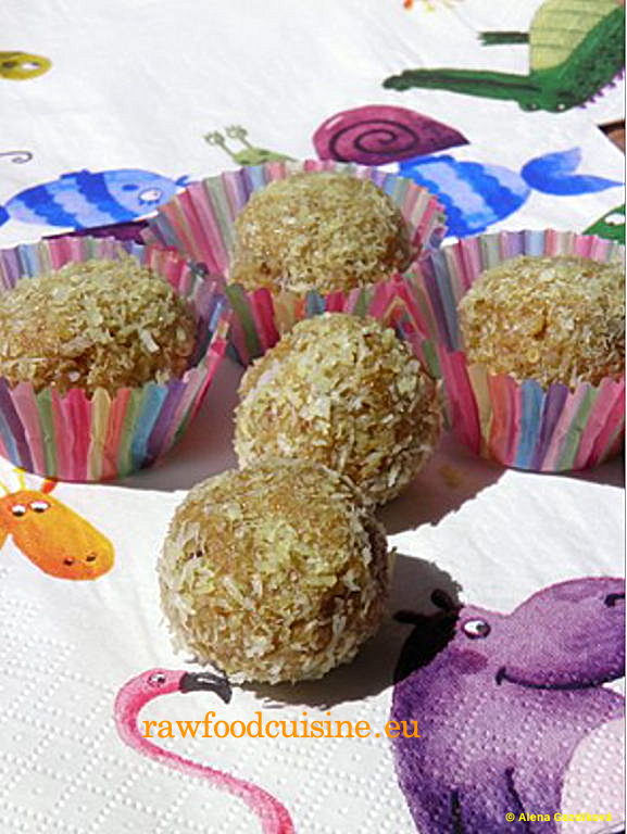 5. Z cesta vyformujte malé guľôčky a obaľte ich v strúhanom kokose.
